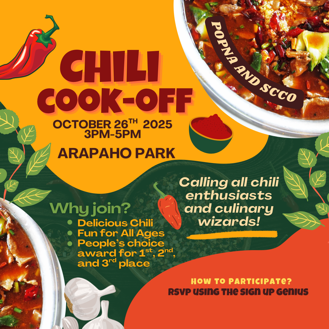 Save the date for the POPNA and SCCO Chili cook-off Sunday, October 26th from 3-5pm. Tastings are free for anyone. Two categories of chili a always; traditional and non-traditional. Awards will be given for 1st, 2nd, and 3rd. Please sign up below if you would like to enter a chili or help with bringing things to go with the chili. We can’t wait to taste all the amazing chili! https://www.signupgenius.com/go/4090944A5A823A1FC1-59075789-popna