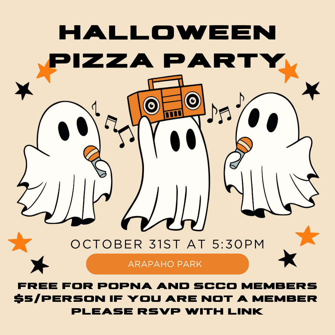 October 31st is quickly approaching! Come join POPNA and SCCO before you set out to Trick or Treat. Come enjoy some pizza with neighbors. POPNA and SCCO members eat FREE. Non-members are welcome. Pizza will be $5/person for non-members. Payment will be taken at the even via cash or venmo. Please RSVP by 10/27/24 so we can order enough pizza.